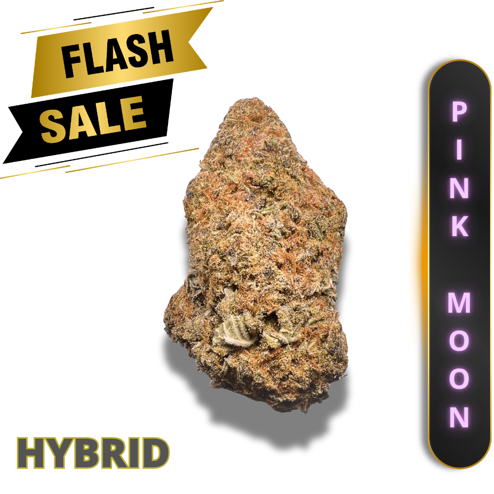 PinkMoon, also known as “Pinkmoon” or “Pink Moon,” is an evenly balanced hybrid strain (50% indica/50% sativa) created through crossing the powerful Tangie X Kosher Kush strains. Named for its gorgeous appearance and soothing high, PinkMoon is the perfect choice for any classic hybrid lover who’s after a little power behind their medicine. This bud has small delicate heart-shaped minty green nugs with light pinkish undertones, thin pink-orange hairs and a coating of tiny milky pink-tinted white crystal trichomes. As you pull apart each sparkling little nugget, aromas of fresh and fruity citrus are released, accented by a punch of spicy black pepper and earth as the nugs are burned away. The flavor is just as delicious, with a sweet and sugary fruity orange overtone and just a touch of black pepper. The PinkMoon high comes on a few minutes after your final exhale, filling your mind with a sense of lifted focus and creativity that gets you instantly jumping on any artistic task at hand or carrying on conversations with those around you with ease. This heady lift is accompanied by a relaxing body high that doesn’t leave you feeling couch-locked, but rather serves to soothe the physical form. With these calming effects and its high 21-30% average THC level, PinkMoon is often chosen to treat those suffering from conditions such as appetite loss or nausea, chronic stress, depression, mood swings and ADD or ADHD.
